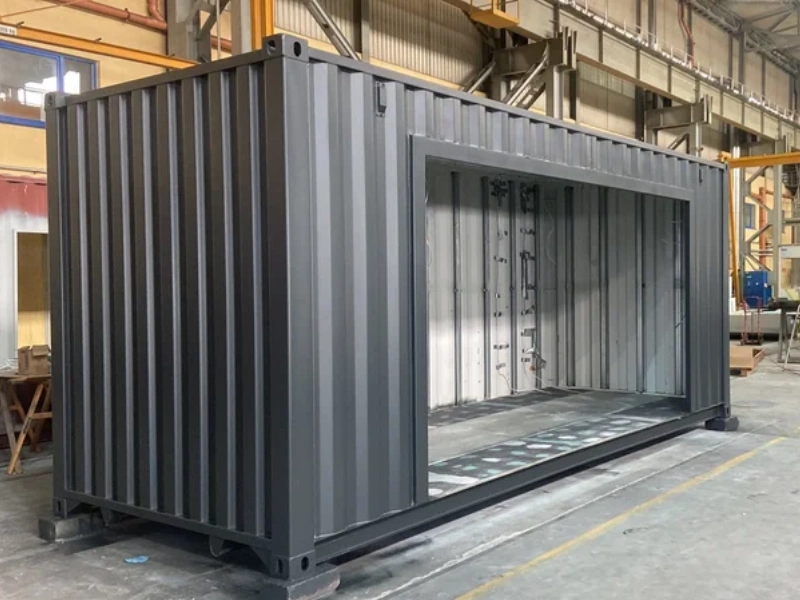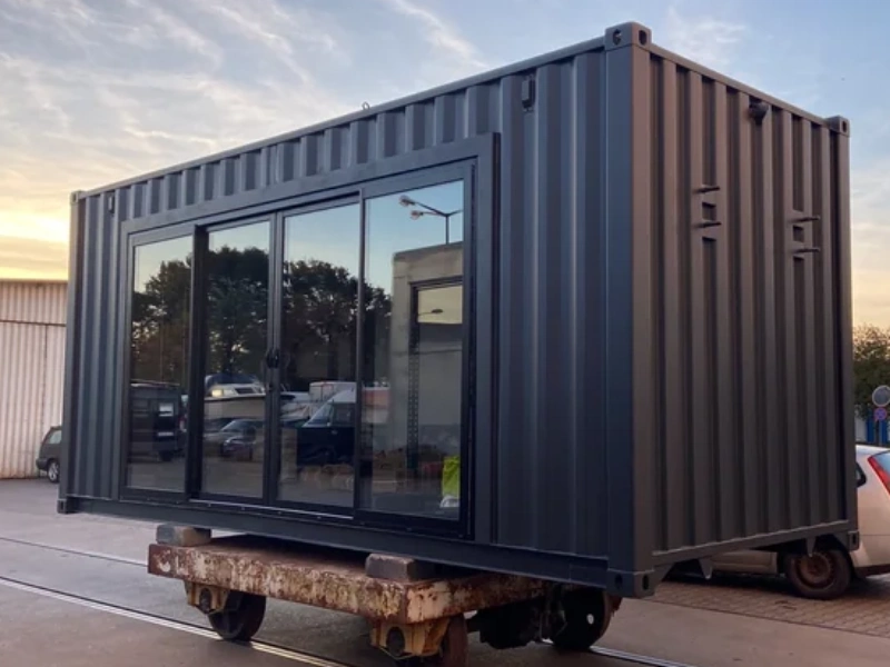 Bei KontainR bauen wir selbst: Wir wählen robuste Schiffscontainer aus, schneiden, isolieren, isolieren, installieren Fenster, Türen, Elektrik, Sanitär und Solar-Integration – alles in unseren eigenen Werkstätten